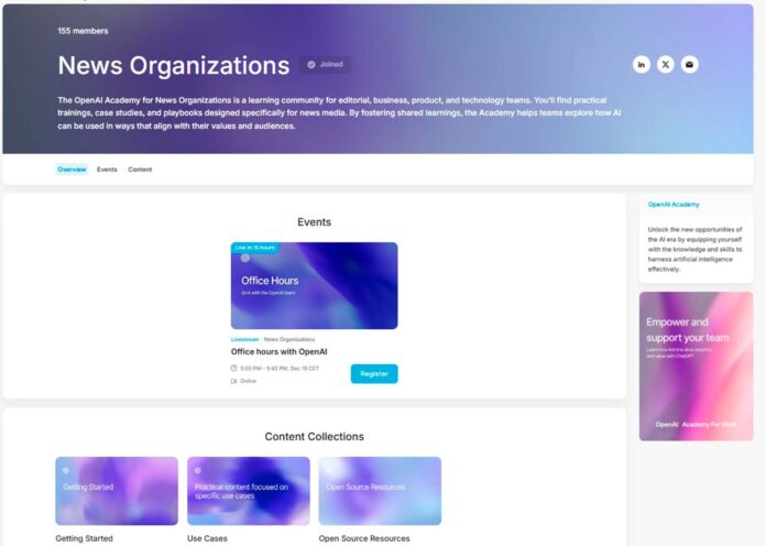 OpenAI ha puesto en marcha una nueva plataforma formativa dirigida a periodistas, editores y responsables de medios con el objetivo de facilitar un uso práctico y responsable de la inteligencia artificial en el trabajo informativo y en la gestión de las organizaciones periodísticas, a través de entrenamientos aplicados, casos reales y recursos reutilizables desarrollados junto a actores del ecosistema del periodismo.