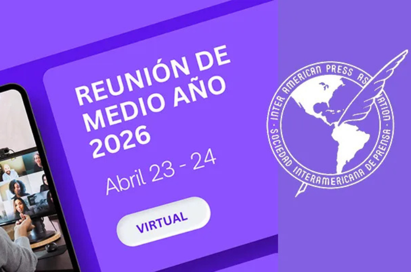 La Sociedad Interamericana de Prensa (SIP) celebrará su Reunión de Medio Año los días 23 y 24 de abril de 2026, un encuentro virtual de editores, ejecutivos de medios, periodistas, académicos y especialistas para debatir los principales desafíos que enfrenta el periodismo en las Américas, como la disrupción provocada por la inteligencia artificial, la sostenibilidad de los medios y el deterioro de la libertad de prensa en la región.